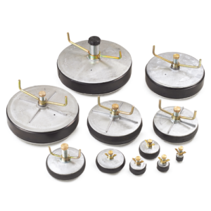 Obturatoare mecanice cu cuplaj rapid si eliberare by-pass de evacuare, ideale pentru obturarea temporara a tevilor care nu sunt sub presiune (max .5 bar). Fabricate din plastic cu intarituri din fibra de sticla, sau din aluminiu cu rasina epoxidica. Dimensiuni disponibile de la 90 mm la 157 mm